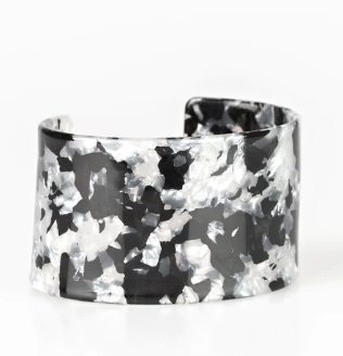 Brushed in a faux marble finish, a thick acrylic cuff wraps around the wrist for a retro inspired look.