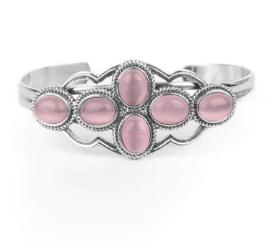 delicately cluster inside a scalloped silver frame, creating an ethereal centerpiece atop a dainty silver cuff.