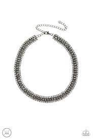 Featuring sleek square fittings, strands of glittery white rhinestones flank a glistening gunmetal chain, coalescing into a regal look around the neck. Features an adjustable clasp closure.