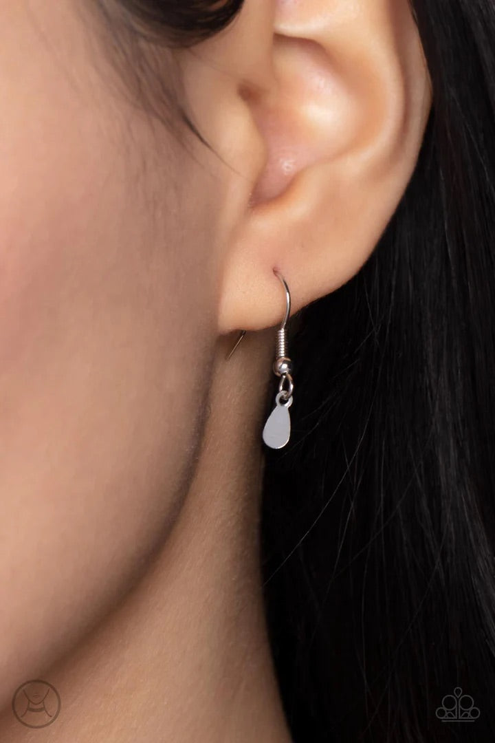 A dainty collection of flat silver teardrops delicately cluster along a dainty silver chain around the neck, resulting in a shimmery fringe. Features an adjustable clasp closure.