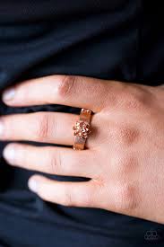 Brushed in a shiny finish, a stacked copper flower blooms atop the finger for a whimsical fall look. Features a dainty stretchy band for a flexible fit.