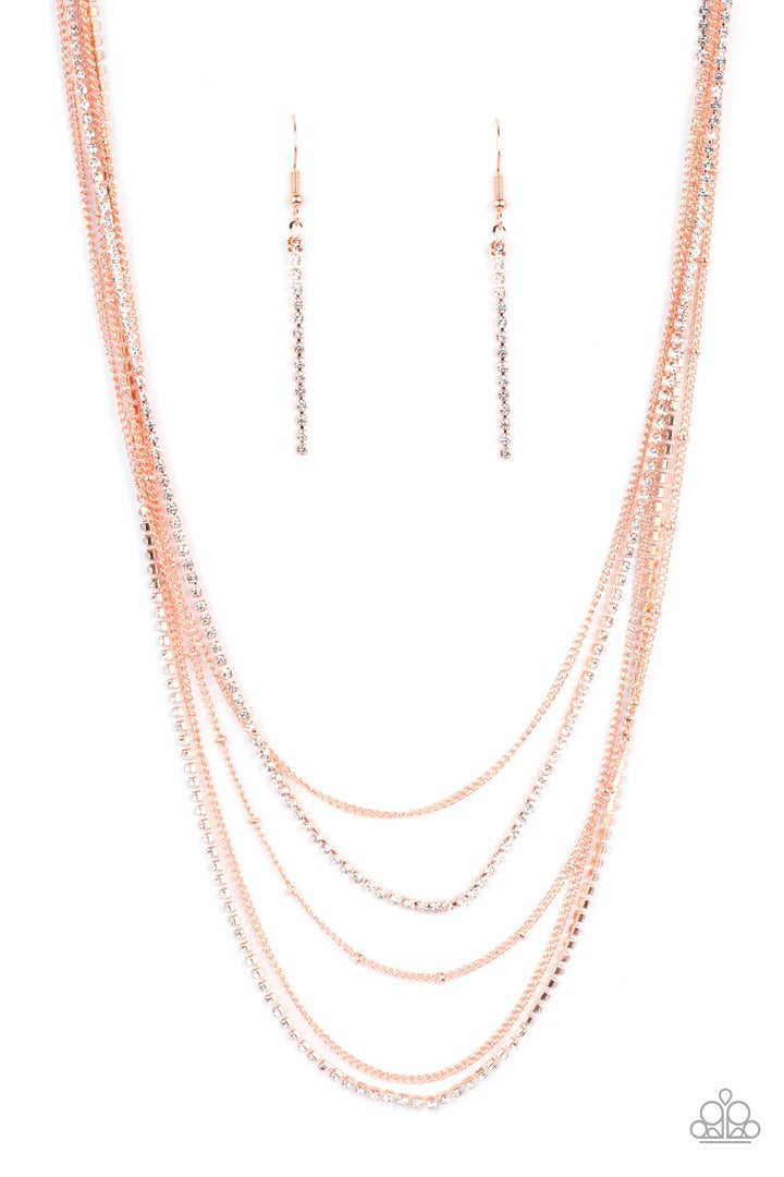 Shimmery strands of dainty white rhinestones mingle with strands of delicate copper chain for a refined and sophisticated look that falls in layers at the collar. Features an adjustable clasp closure.