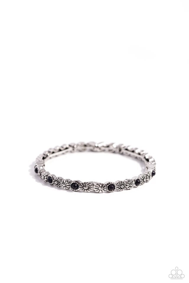 Embrace the beauty of nature with this enchanting wrist accessory featuring a charming array of delicate silver flowers. Each ornate bloom, complemented by striking black-centered silver flowers, gracefully alternates along stretchy bands, creating a whimsical yet sophisticated pop of fashion. Perfect for adding a touch of elegance and playfulness to any outfit, this piece is a true statement accessory.