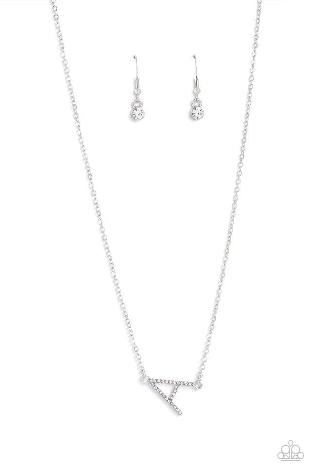 Embossed with dainty white rhinestones, a silver letter "A" hovers below the collar from a dainty silver chain, for a sentimentally simple design. Features an adjustable clasp closure.