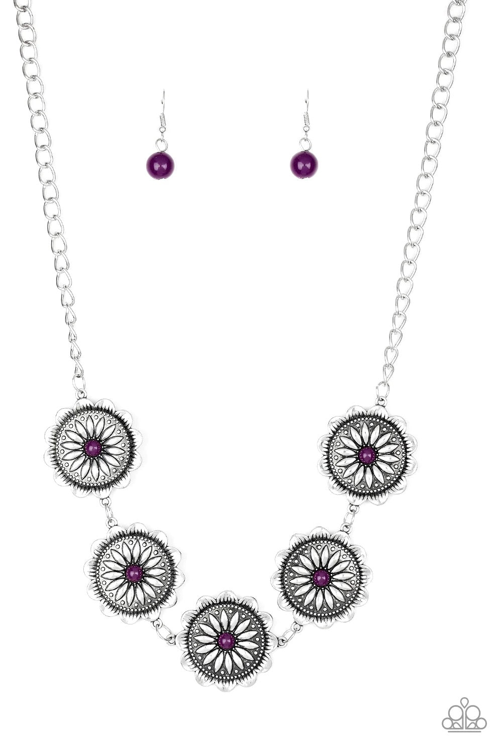 Infused with shiny plum beaded centers, ornate floral stamped frames link below the collar for a colorfully, seasonal look. Features an adjustable clasp closure.