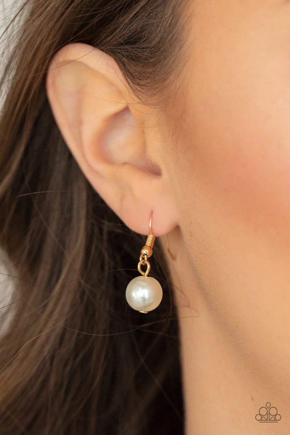 Classic white pearls and faceted gold beads alternate along an invisible wire below the collar, creating a timeless twist. Features an adjustable clasp closure.