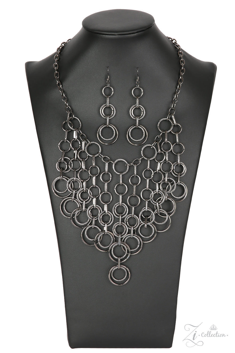A collection of glistening gunmetal hoops connects to form dramatic tassels, falling together into a sassy industrial fringe. The centermost tassel is slightly elongated, creating a fierce focal point as the web of gunmetal rings lays delicately across the chest. Features an adjustable clasp closure.