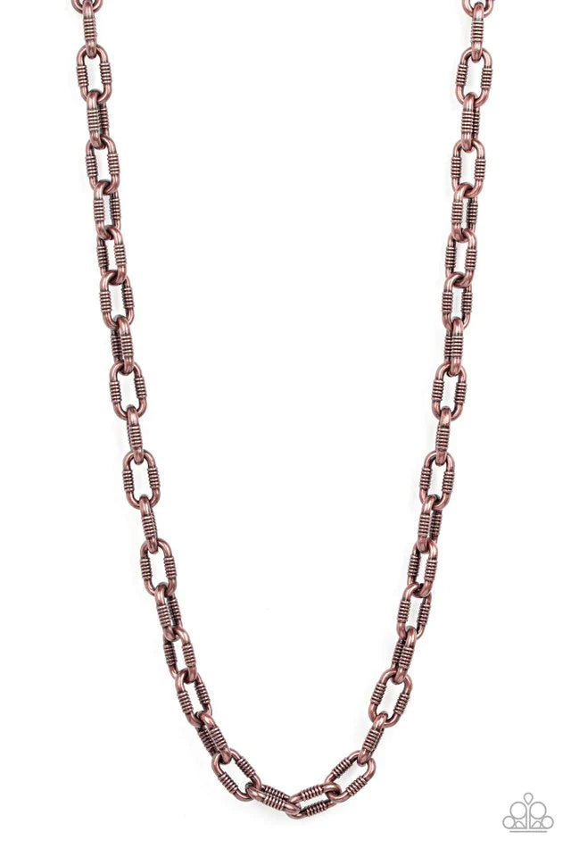 Featuring gritty texture, an oversized copper chain drapes below the collar for an edgy urban look. Features an adjustable clasp closure.