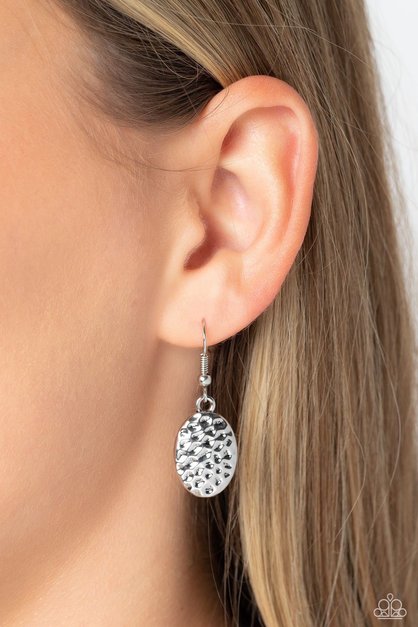 Hammered in a blinding finish, rippling silver oval discs combine with abstract hammered frames. Set inside the rippling silver frames, abstract red oval stones create a startling pop of color against the chest for an earthy finish. Features an adjustable clasp closure. As the stone elements in this piece are natural, some color variation is normal.