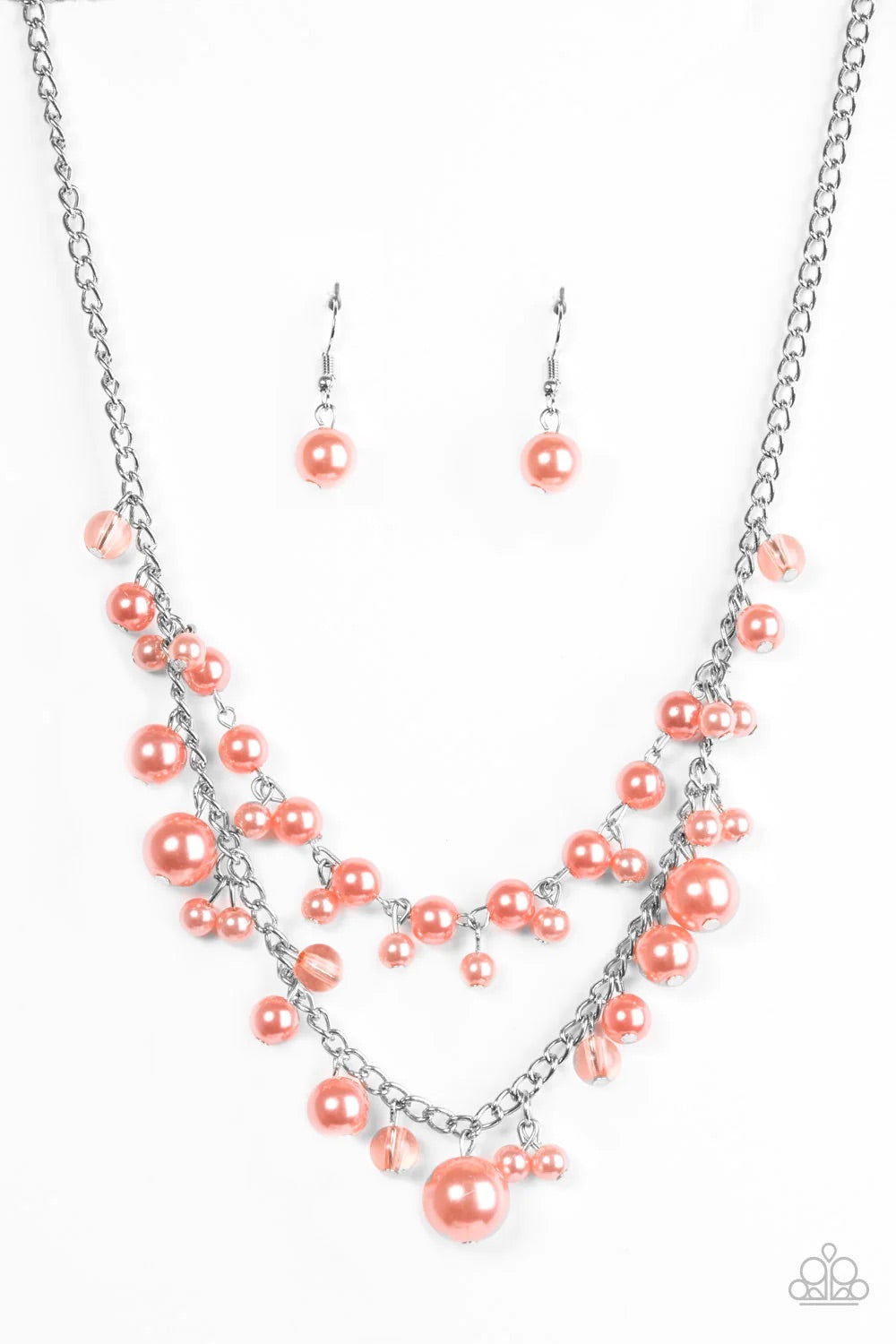 Featuring glassy and pearly finishes, dainty coral beads swing from the bottom of layered silver chains, creating a bubbly fringe below the collar. Features an adjustable clasp closure.