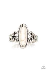 A dainty white stone bead is pressed into the center of an antiqued silver frame radiating with glistening filigree for a seasonal look. Features a dainty stretchy band for a flexible fit.