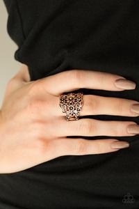 Brushed in an antiqued shimmer, glistening copper daisies bloom across the finger, creating a whimsical floral frame. Features a stretchy band for a flexible fit. Sold as one individual ring.