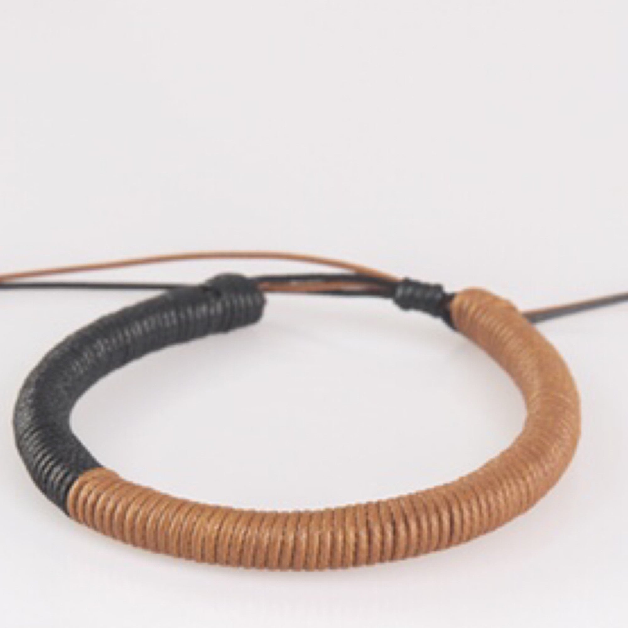 Brown and Black Cording Urban Bracelet Earthy brown cording fades into shiny black cording across the wrist for a seasonal look. Features an adjustable sliding knot closure. Sold as one individual bracelet.