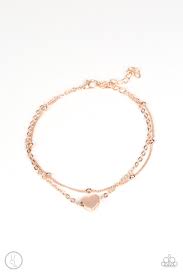 Infused with a dainty rose gold beaded chain, a glistening rose gold heart charm slides along a shimmery rose gold chain around the ankle for a charming look. Features an adjustable clasp closure.